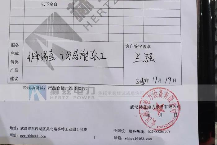 我司電力試驗設備現場使用穩定,測量精準得到了客戶的認可。我司技術人員專業及熱情的服務也到了大大的好評,感謝客戶選擇及支持,我司會更加做好服務及設備生產質量。