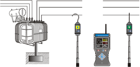 接觸核相:當(dāng)裸導(dǎo)線電壓低于35kV時(shí),或110kV以下具有安全絕緣外皮的導(dǎo)線,可以將探測(cè)器探針或探鉤接觸導(dǎo)線核相。極低電壓時(shí),例如低于60V,必須接觸核相。核相時(shí),探測(cè)器自動(dòng)調(diào)節(jié)電場(chǎng)感應(yīng)強(qiáng)度,根據(jù)電場(chǎng)強(qiáng)弱自動(dòng)增強(qiáng)和減弱信號(hào)放大倍數(shù),便于線路密集的場(chǎng)所核相。