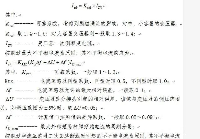 按躲過電流互感器二次回路斷線時引起的不平衡電流為原則,其不平衡電流值為: