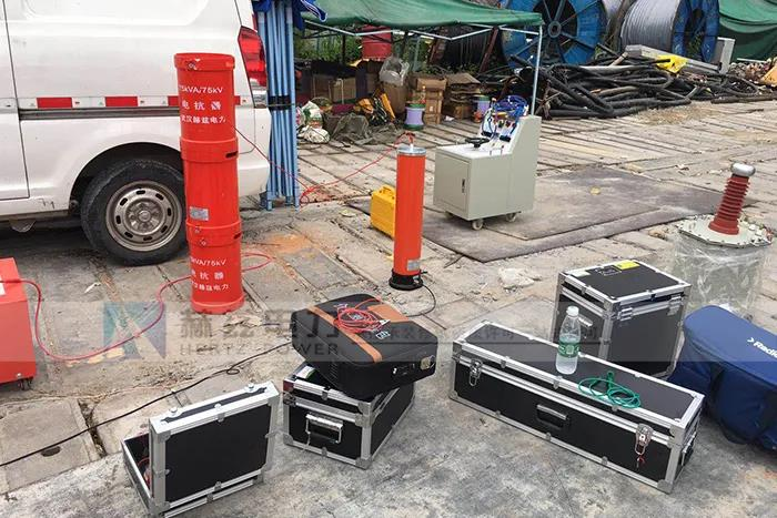 武漢赫茲電力導讀:近期我司河北老客戶再次采購我司了一批耐壓試驗設備,主要用在10KV電纜耐壓試驗,及變壓器工頻耐壓試驗中。客戶主要10KV工程,我司推薦了75KVA/75KV變頻串聯(lián)諧振成套裝置及5KVA/50KV工頻耐壓試驗裝置。客戶之前采購過我司變壓器檢測設備(直流電阻測試儀,變壓器變比測試儀),使用情況很好,得到了前期信任。客戶很快跟我司簽訂了合同,到貨后我司安排技術人員上門培訓驗收。
